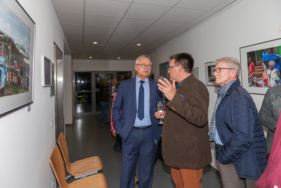 Die Vernissage am 06.11.2015 mit dem Braunschweiger Galeristen und Kurator der Ausstellung Olaf Jaeschke, dem Bürgermeister Herr Werner, Opportunity International Deuschland (OID)-Vorstand Mark Ankerstein, Hans-Henning Nathow, Botschafter von OID und Opportunity in Aktion (OiA), Hendrik Vodegel (Projektleiter go4school bei OiA) sowie weiteren 120 Teilnehmerinnen und Teilnehmern war ein voller Erfolg und ein sehr guter Start der sechs wöchigen Ausstellung. Gezeigt wurden 72 Exponate auf 3 Etagen (3 Gemälde von Dr. Antje Marschinke und 69 Fotografien vom Fotokünstler und Tourfotografen Hendrik Peusch).