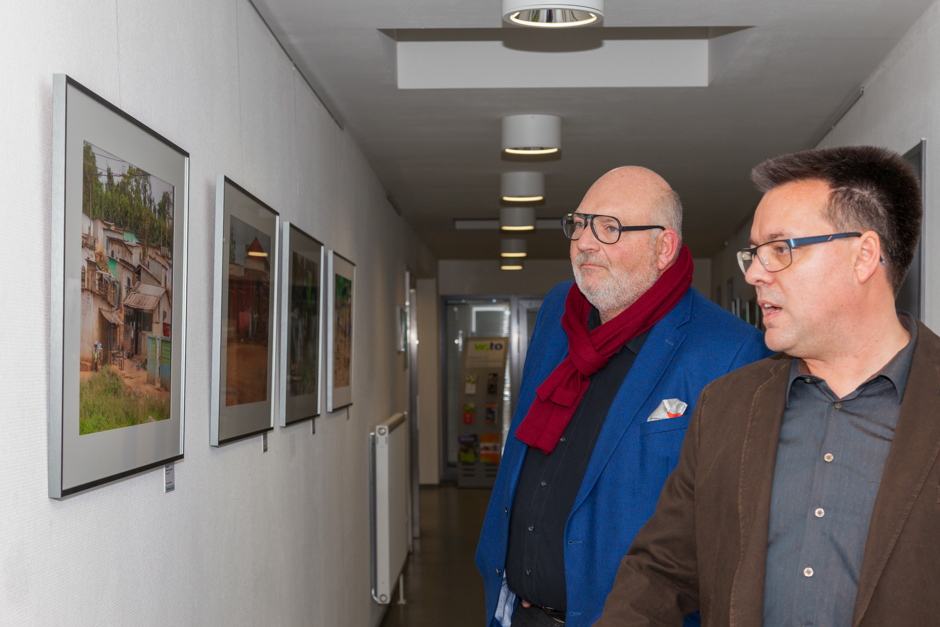 Ausstellungseröffnung „Leben, Impressionen aus Afrika“ von Hendrik Peusch in Vechelde bei Braunschweig mit dem Kurator Olaf Jaeschke.