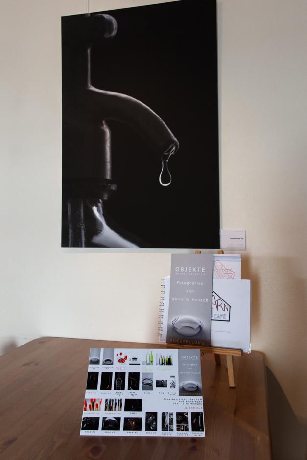 In meiner ersten „große“ Foto-Ausstellung „OBJEKTE“ vom 01.07.-31.07.2013 bei Kunstgalerie & Kunstkaffe The Barn in Söhlde waren waren Objekt-Fotografien zu sehen, die in meinem Fotostudio in Hillerse entstanden sind und bei deren Aufnahme das „Licht & Schatten“ und Reflexionen von besonderer Bedeutung waren. Ob Glas, metallische Oberflächen, Wasser, Wein, Gemüse, Streichhölzer oder ein ausgewachsenes Motorrad … eine echte Herausforderung!