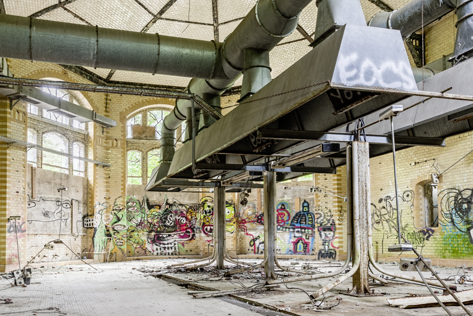 Nach dem wir fast 5 Studen bei 30º Celsius in den Überresten von Beelitz unterwegs waren und das Naturschauspiel im Alpenhaus umgesehen haben, setzten wir unseren Rundgang im „Küchengebäude von 1902“ (Gebäudekomlex A-B2, Gebäude 4) fort, bevor die erste Station – das „nördliche Kessel- und Maschinenhaus“ Foto-Thema sein wird…