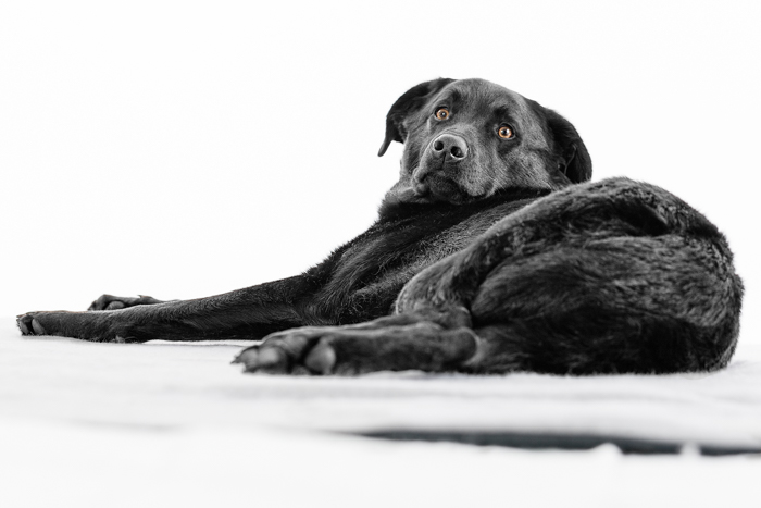 Natürlich war der blanke Studioboden nicht gut genug für mein männliches Hundemodel, so dass eine angenehm flauschige MOLTON Unterlage gerade angemessen und geeignet erschien, was Samu umgehend dankte. Nach einiger Zeit war dann auch genug gearbeitet und Samu legte sich für ein Nickerchen mitten in das Set.